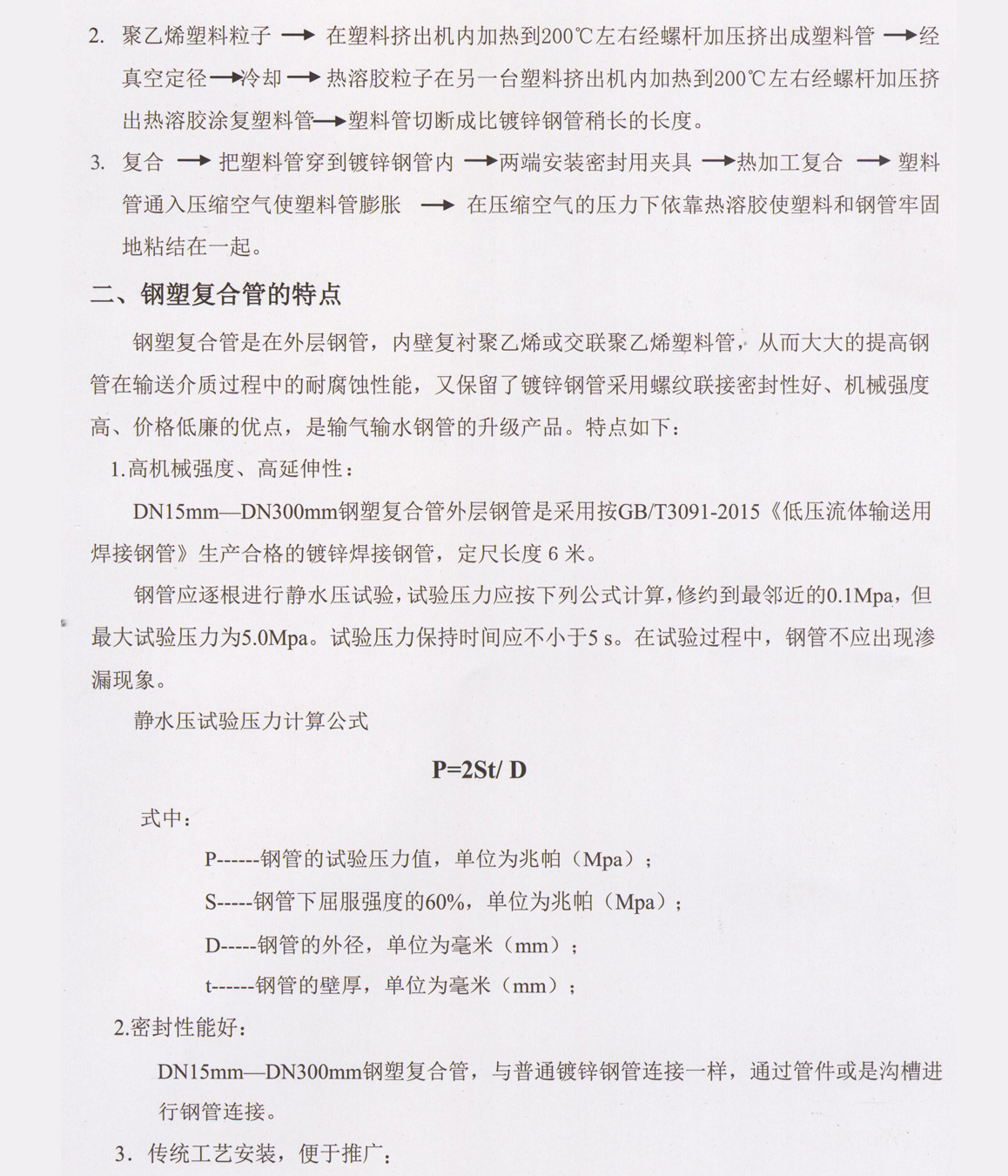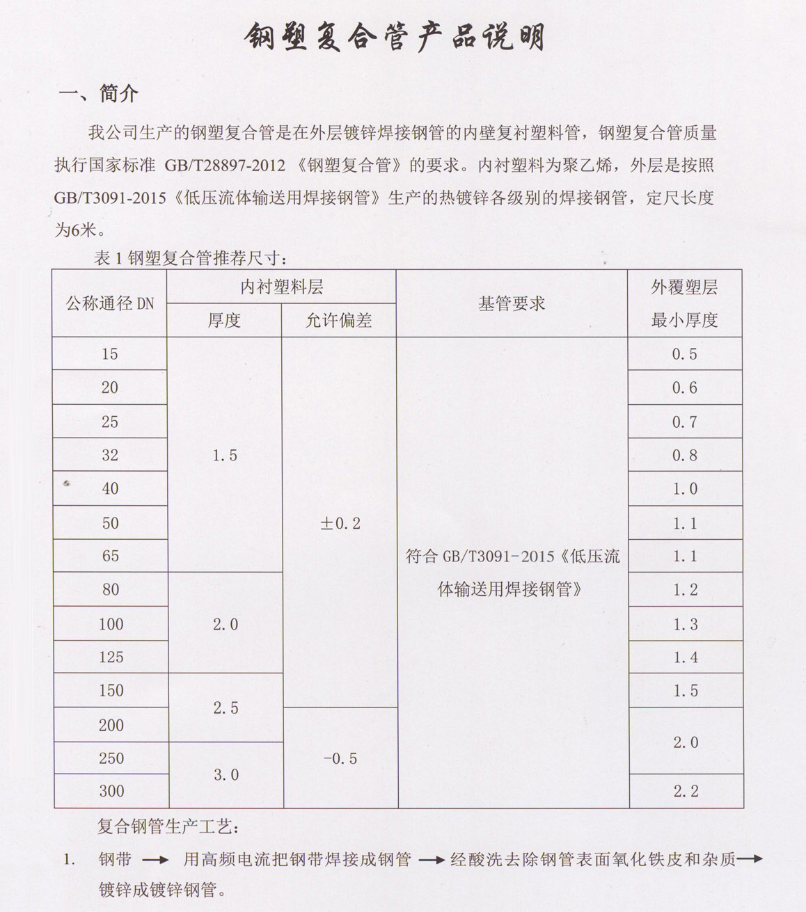 | 钢塑复合管 | DN15-DN65 | 1.5/1.0 | 0.5-0.1 |