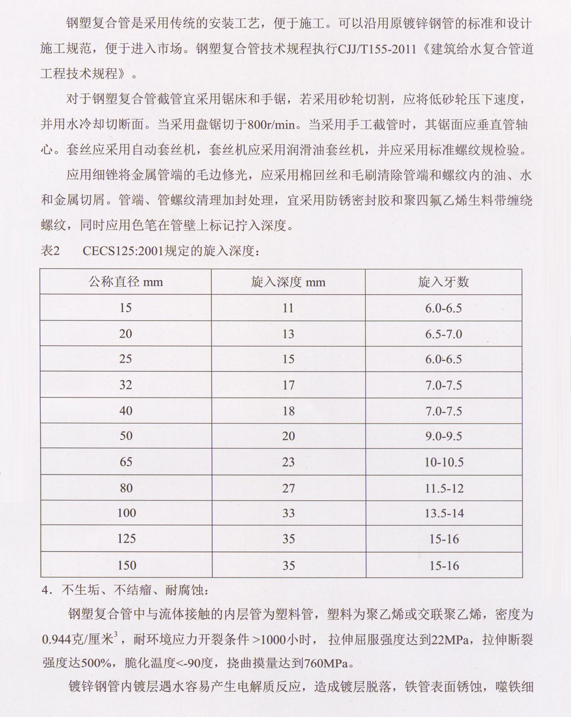 | 钢塑复合管 | DN80-DN125 | 2.0/1.5 | 1.2-1.4 |